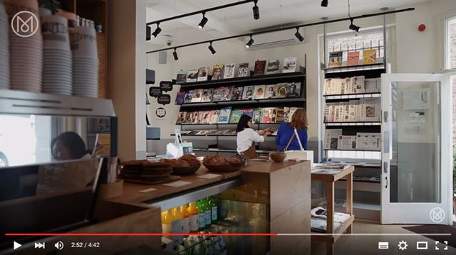 (사진)고품질 디자인으로 급성장한 영국 잡지 모노클의 런던 키오스카페. 독자 취향을 겨냥한 디자인 상품과 간단한 먹을거리를 책과 함께 파는 카페형 매장이다. 유튜브 화면 저장