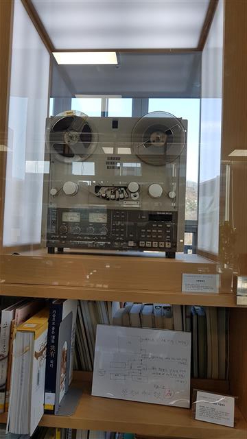 가장 눈에 띄는 전시물은 승무(1987년), 살풀이춤(1990년) 보유자 고 이매방 선생이 사용하던 ‘릴데크’다. 비디오테이프나 카세트테이프를 편집하는 도구인데, 이 선생이 쓰던 것을 2016년 기증했다. 릴데크 밑에 사용법을 쓴 이 선생의 자필 메모가 붙어 있다. 비디오테이프 규격인 ‘베타’(beta)와 ‘브이에이치에스’(VHS) 플레이어를 TV에 어떻게 연결하는지 볼펜으로 일일이 그린 것이다. 릴데크는 책상이 끝나는 지점에서 사선으로 배치한 서가 너머에 자리했다. 사선으로 배치된 이 두 개의 서가에는 다른 도서관이나 박물관에서 볼 수 없는 자료들이 가득하다. 한쪽 서가에는 무형유산원 발간도서와 작고한 보유자 개인 파일, 나머지 한쪽에는 무형문화재 기록도서가 빽빽하게 꽂혀 있다. 보유자 개인 파일 가운데 이매방 선생 기록을 꺼내 보니, 예전 공연 스케줄을 비롯해 연습 방법과 신문기사 스크랩 등이 한 뼘 두께가량 담겼다. 최연규 무형유산원 조사연구기록과 사무관은 “이매방 선생 릴데크와 개인 파일 자료 등은 이 선생을 이해하는 데 도움이 되는 것들”이라며 “선생의 유품은 물론 관련 자료, 연관된 책들까지 이곳에서 함께 볼 수 있다”고 설명했다.
