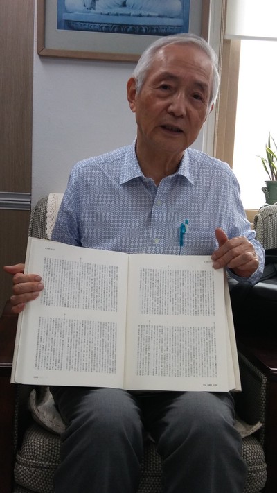 (사진 아래) 최근 발간한 <일본 현존 조선본연구 사부>를 펴보이고 있는 후지모토 유키오 전 교수.