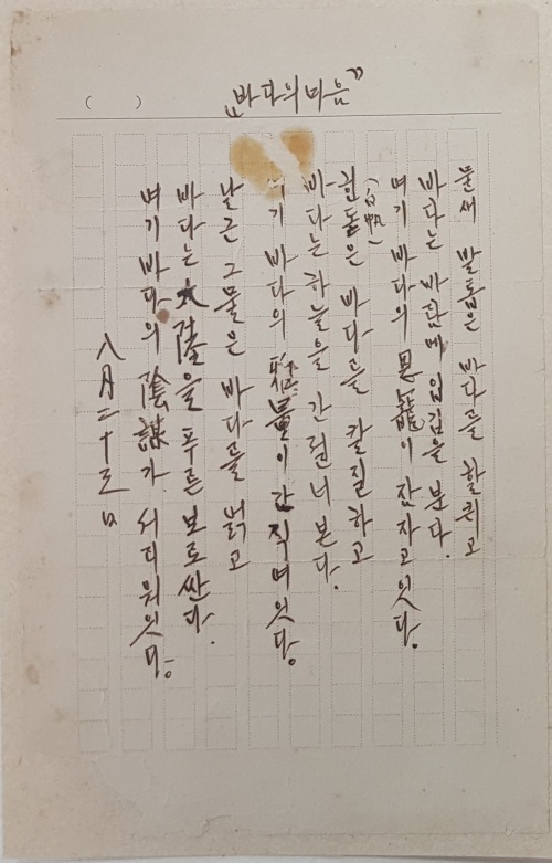 이육사 ‘바다의 마음’ 원고 문화재 등록